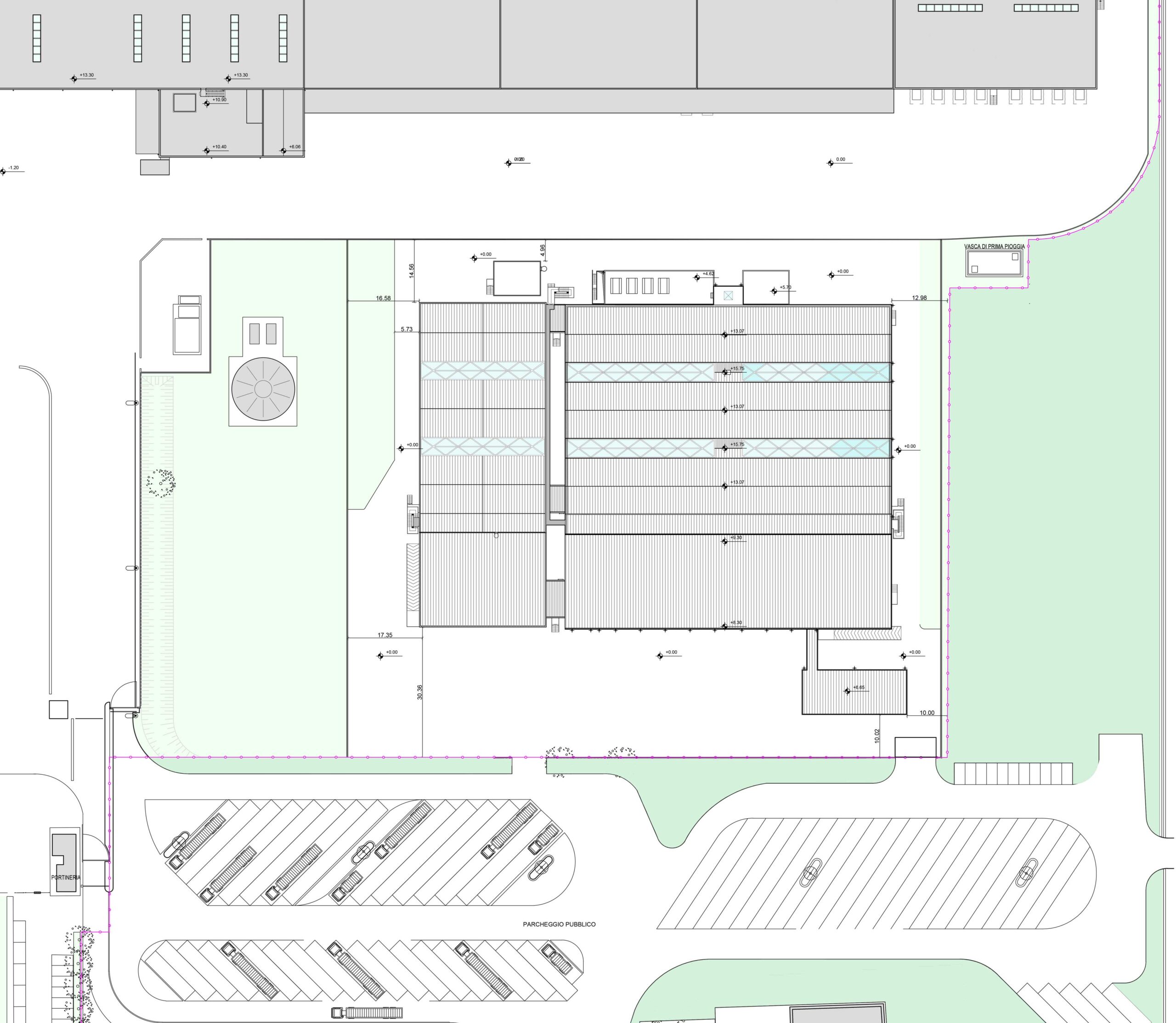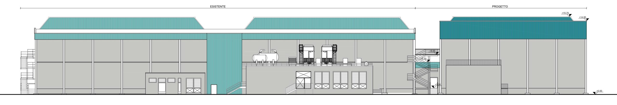 L’ampliamento, costituito da un nuovo corpo di fabbrica posto sul fianco ovest della cella esistente, occupa un’area di circa 29 x 75 metri, così suddivisa: