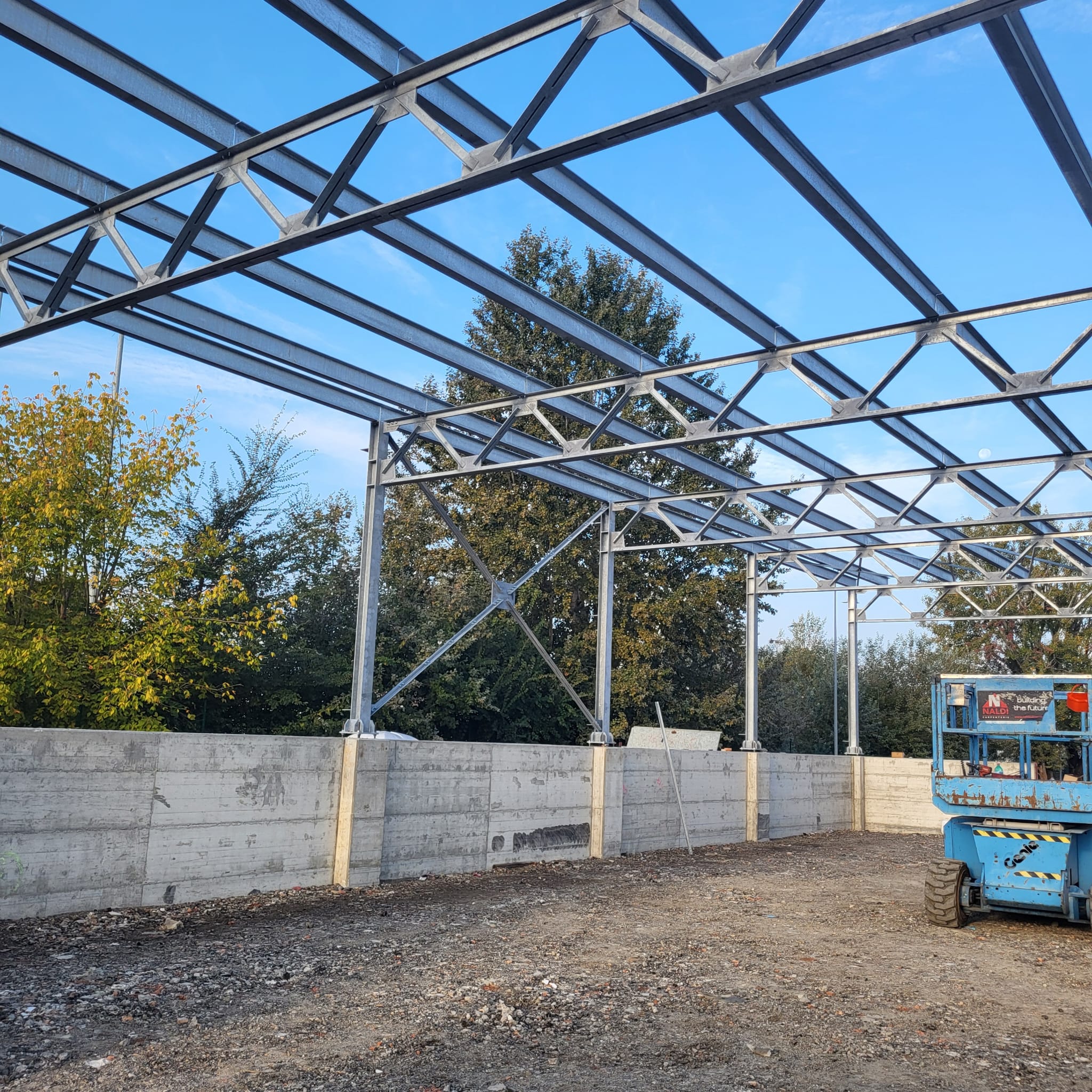 Il rivestimento esterno è realizzato in lamiere grecate, in continuità estetica con il fabbricato esistente.