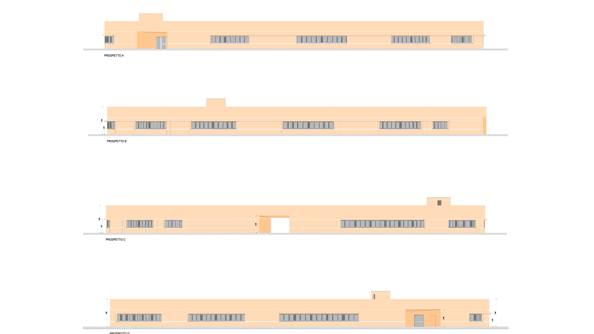 Il corpo di fabbrica è rifinito interamente con intonaco materico eseguito con grana di finitura grossa, con colorazione calda del tipo rosso mattone, al fine di richiamare la colorazione dei campi circostanti e i