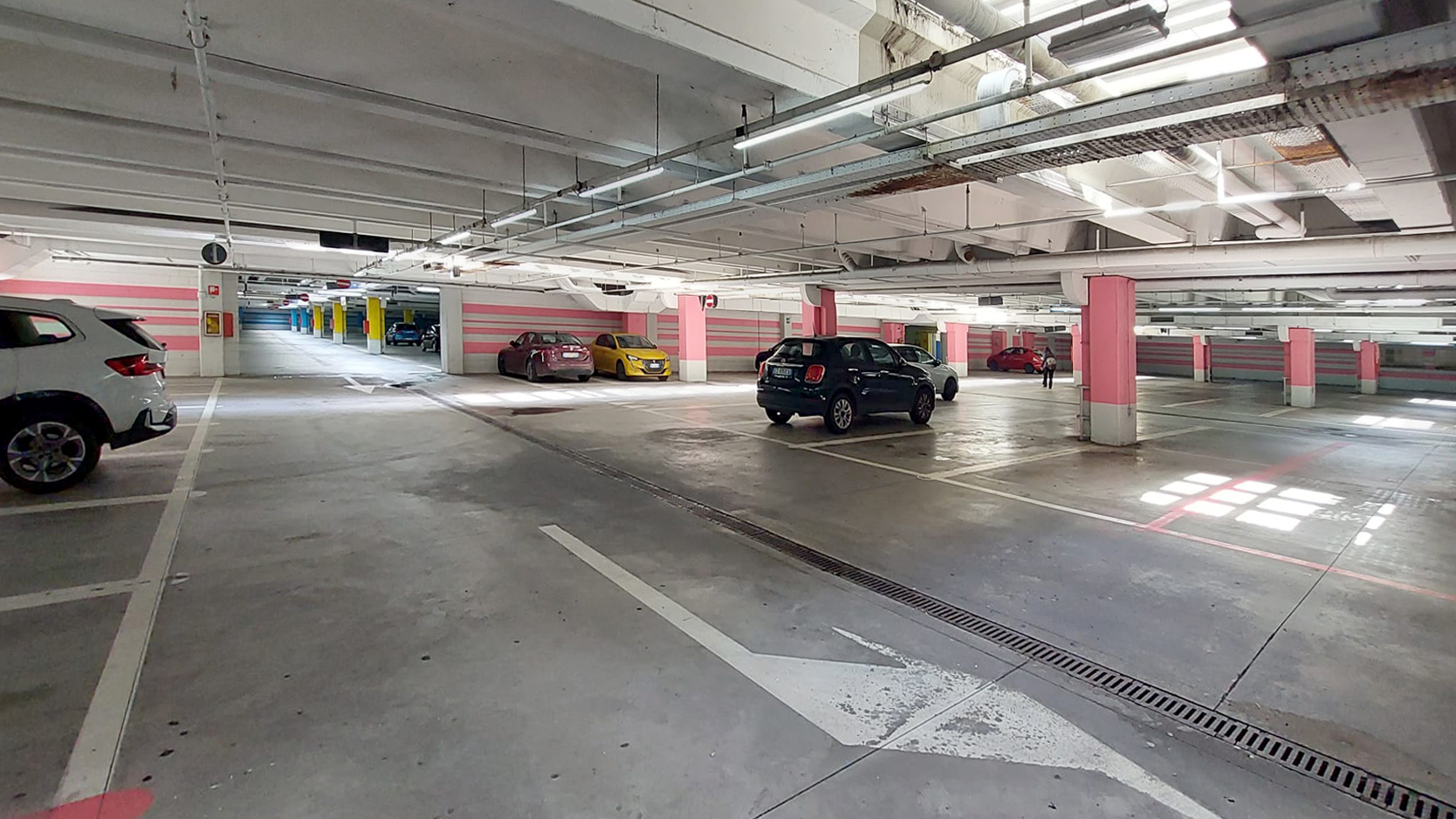 • il piano terra di 34.000 mq e il piano interrato di 9.150 mq ospitano complessivamente 1.317 posti auto