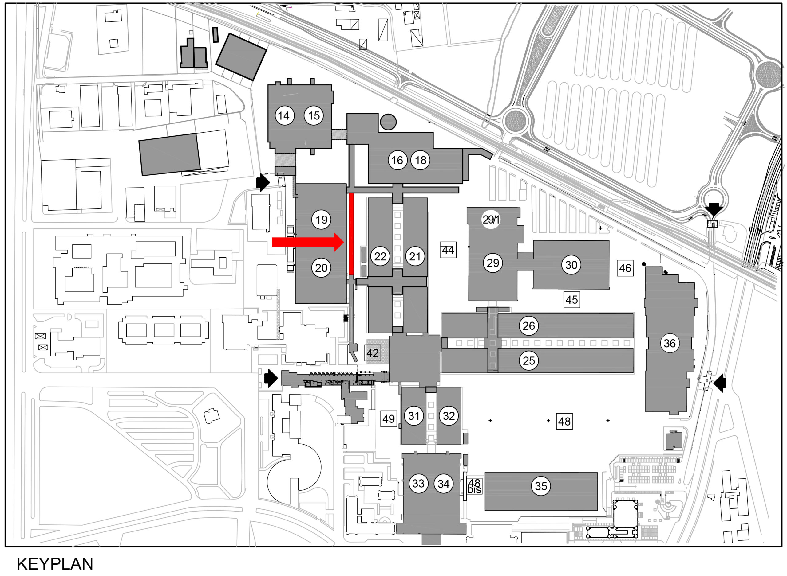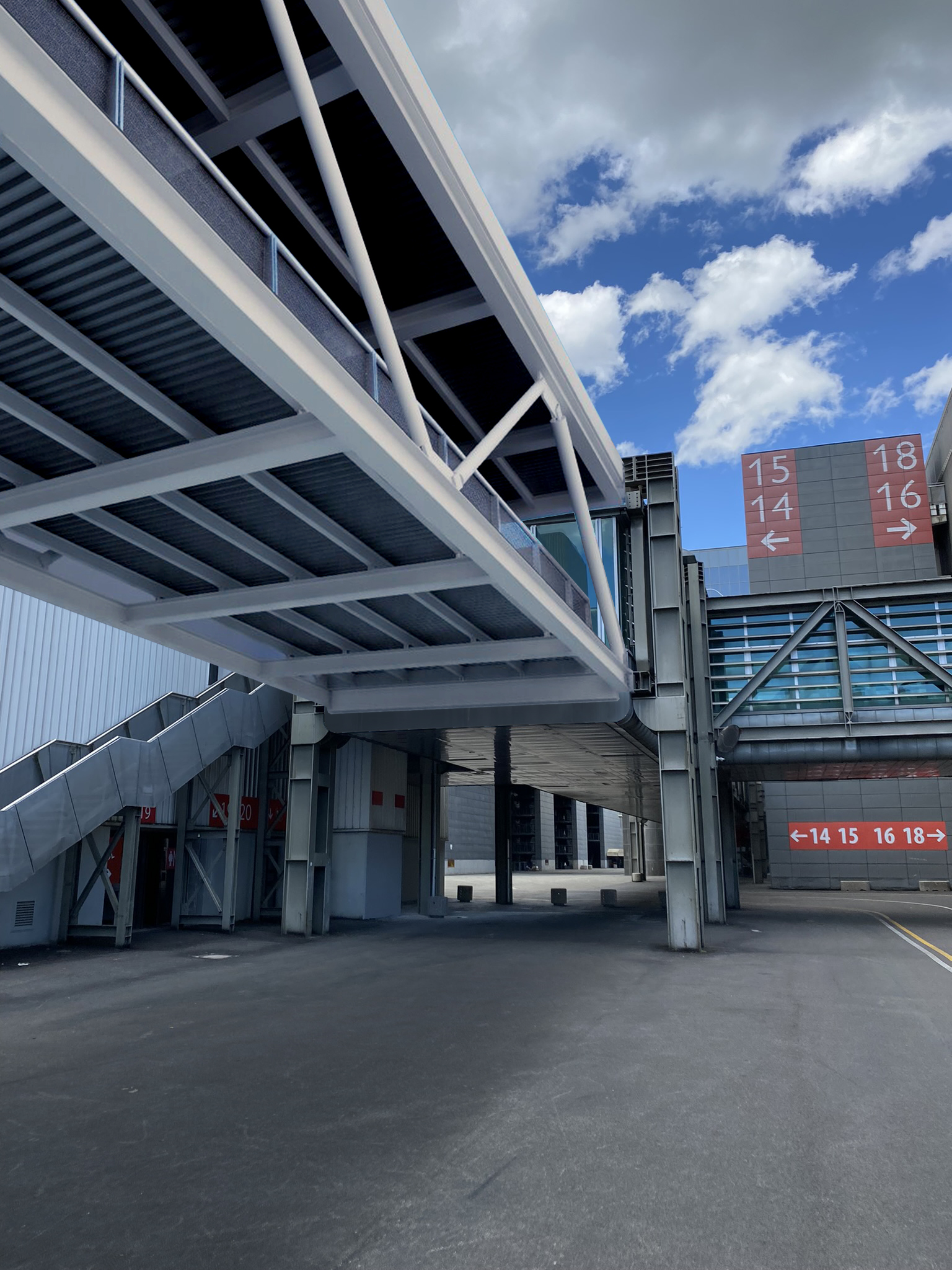 La struttura sarà composta da 5 campate sostenute da una serie di portali in acciaio; alle due estremità la passerella sarà supportata dai due portali esistenti dei collegamenti adiacenti, progettati in previsione di un futuro ampliamento. I portali centrali invece, di nuova realizzazione, saranno costituiti da pilastri in profili circolari che si rastremano all’estremità collegati da profili HE aperti.