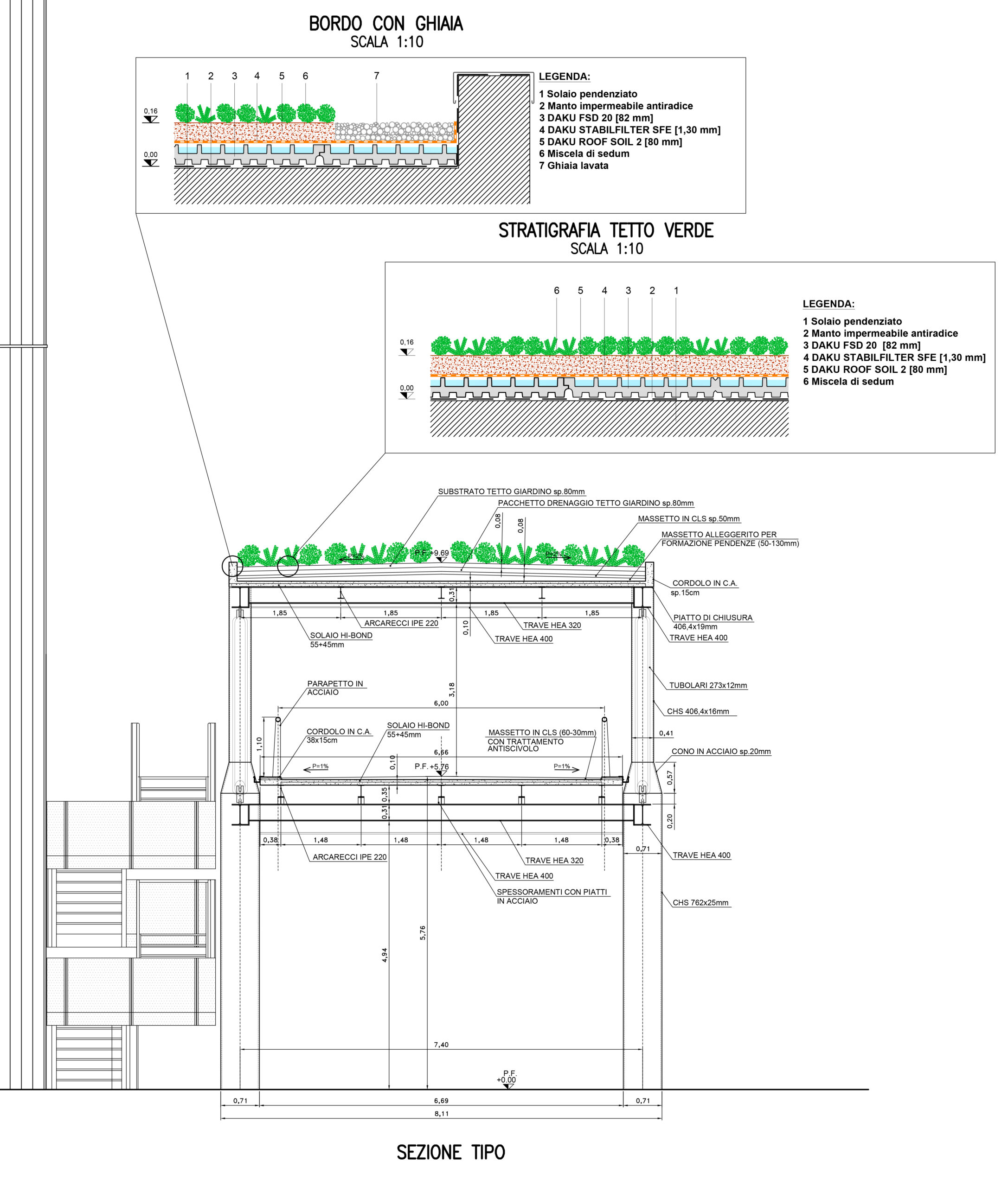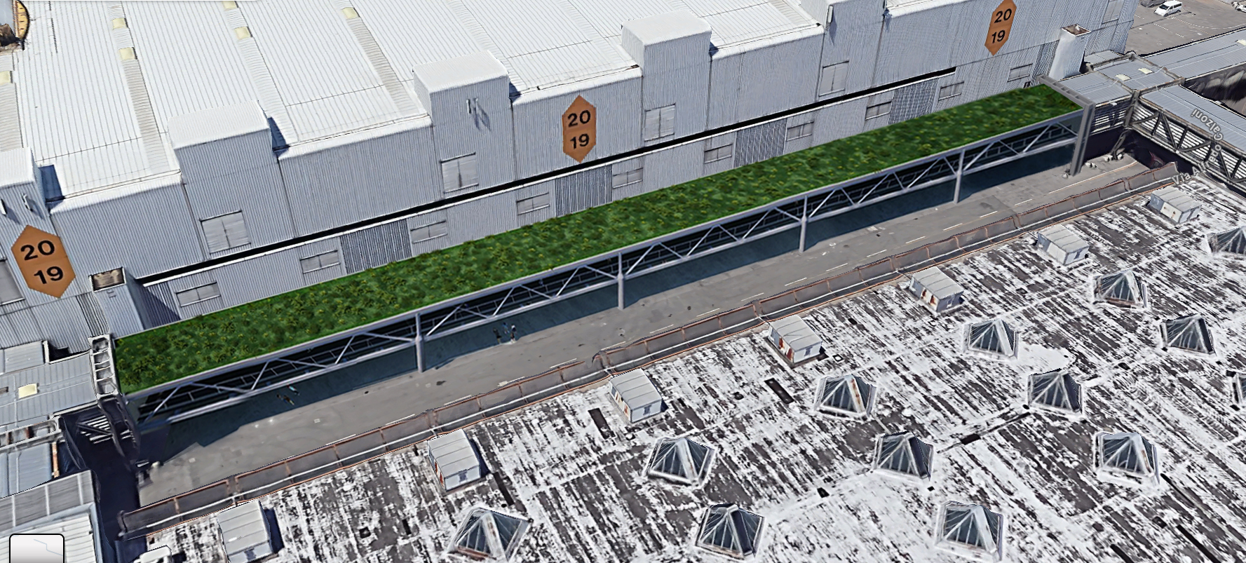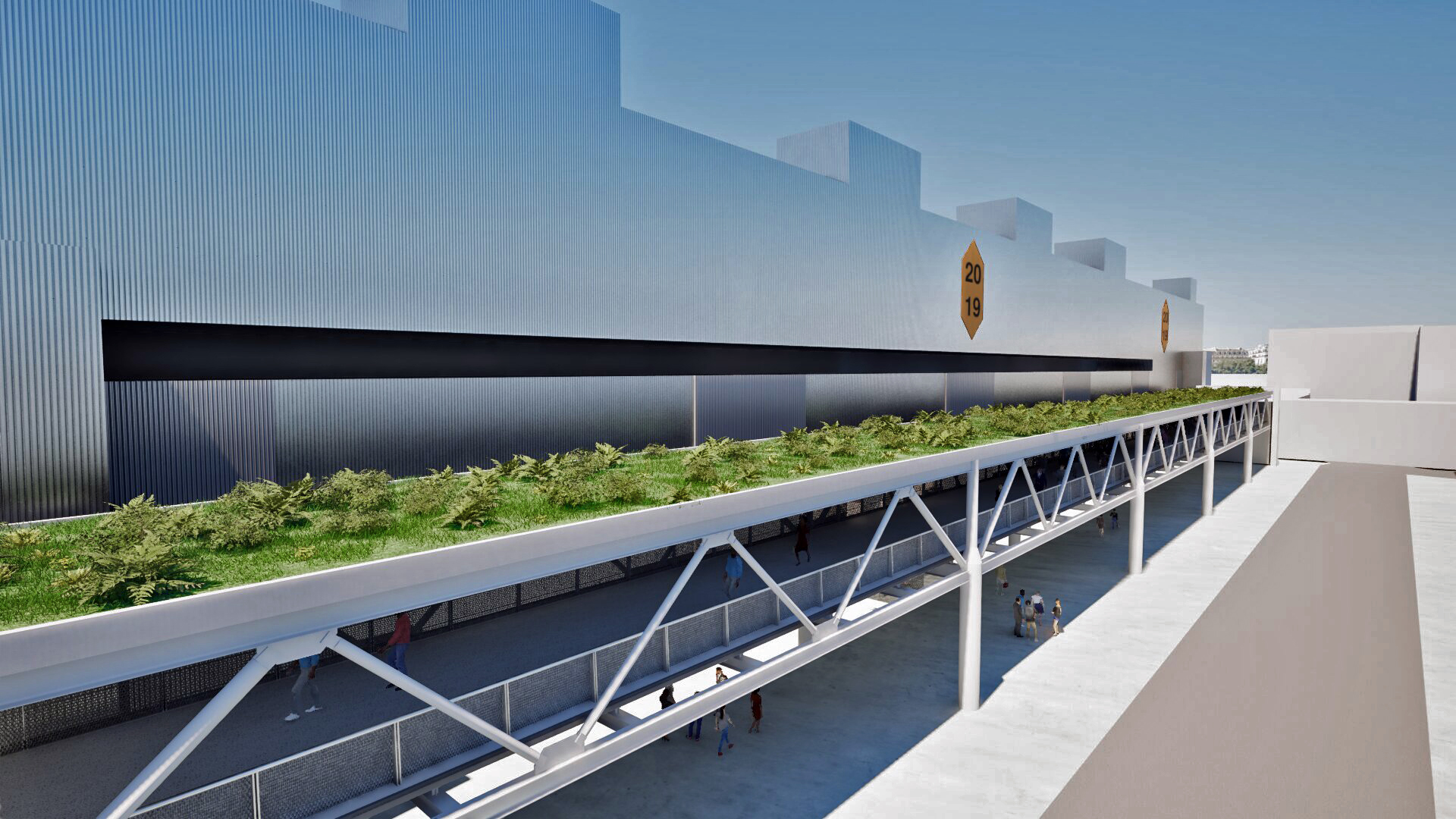 La passerella, realizzata in carpenteria metallica a struttura reticolare, sarà coperta con tetto verde e aperta sui lati esterni.