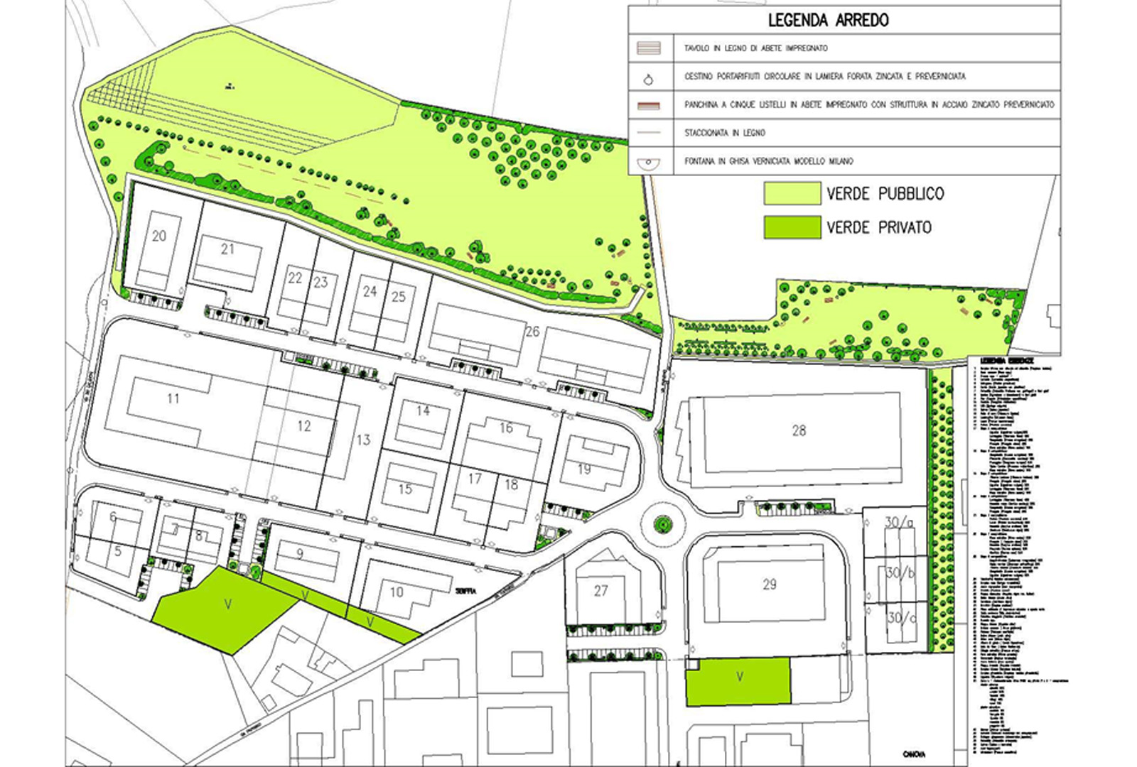 Le superfici destinate a parcheggio sono state alberate al fine di offrire un’adeguata ombreggiatura ai posti auto .