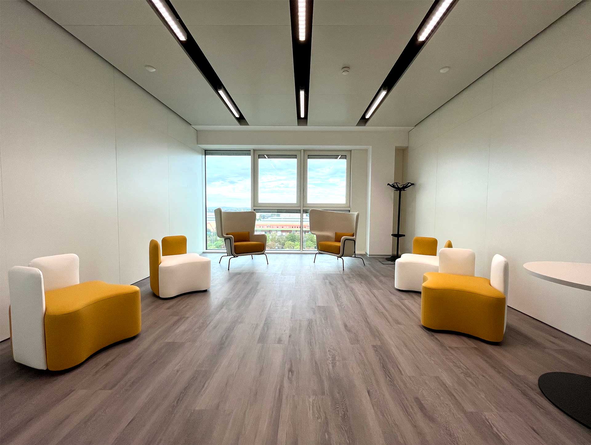 Si è scelto inoltre di abbandonare la postazione fissa applicando invece il concetto di smart desk: le postazioni, prenotabili tramite app, sono occupate nei giorni di presenza in sede secondo necessità, ulteriore passo avanti in termini di flessibilità ed efficienza.